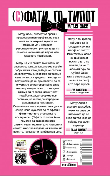 Оваа негова книга е уникатен водич за секоја жена која сака да го сфати и фати типот што отсекогаш го посакувала. (С)фати го типот ќе ви помогне да разберете како размислуваат мажите, што навистина сакаат, како тие гледаат на жените, на врските, на сексот и на обврзувањето.